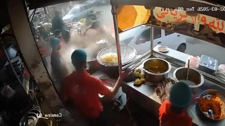 V pákistánském Karáčí v oblasti Khudadad Colony došlo k vážné nehodě, když neovladatelné osobní auto vjelo před restaurací přímo do velké pánve s rozpáleným olejem, která byla připravena na smažení tradiční halwa puri. Podle zprávy majitel vozidla auto zaparkoval a odešel pryč, přičemž uvnitř zůstal mladík, který vůz nastartoval. Auto se následně dalo do pohybu, rozjelo se a narazilo do pánve stojící před restaurací. Horký olej se rozlil na čtyři přítomní zaměstnanci utrpěli vážné popáleniny. Zranění byli okamžitě převezeni do nemocnice k ošetření. Policie v souvislosti s incidentem zadržela dva lidi včetně mladíka, který vozidlo uvedl do pohybu, a automobil byl zabaven.