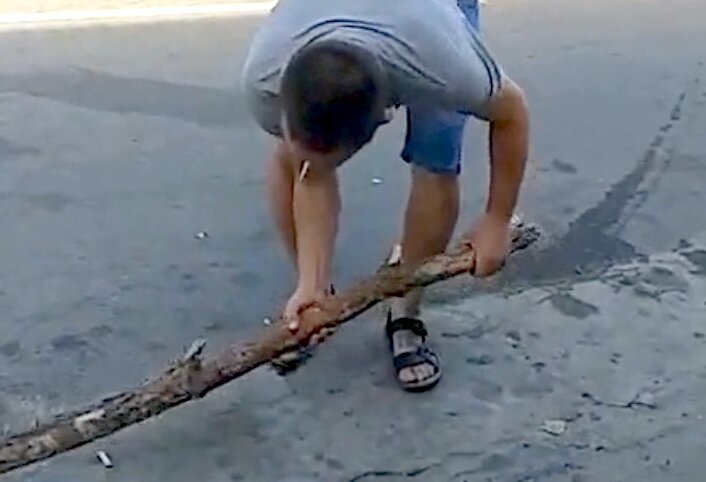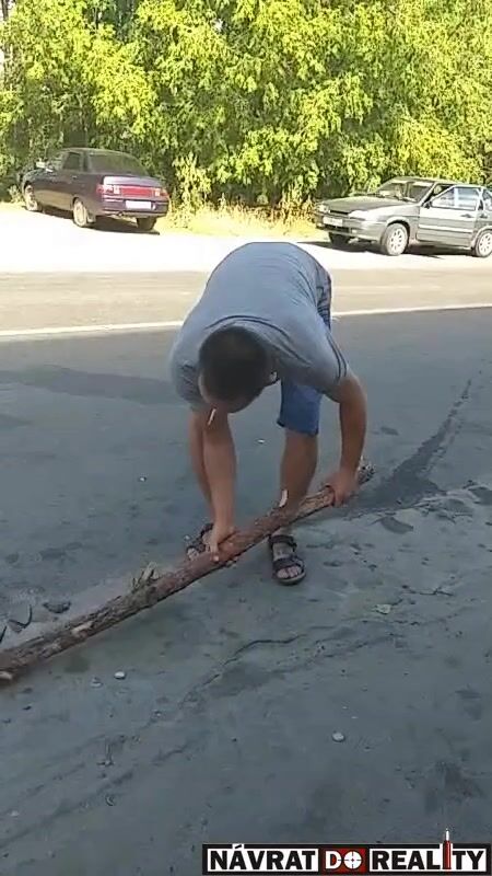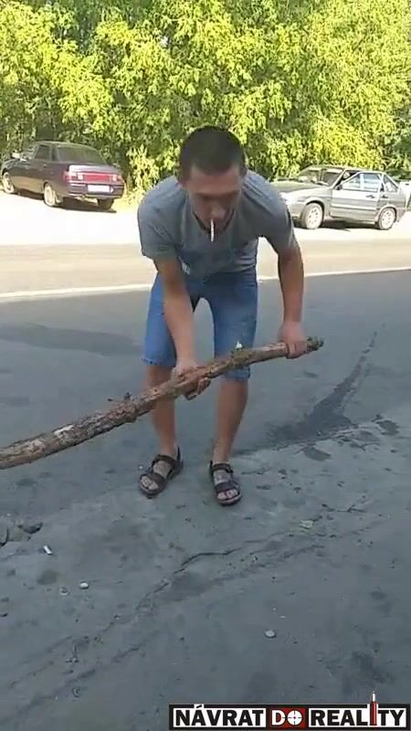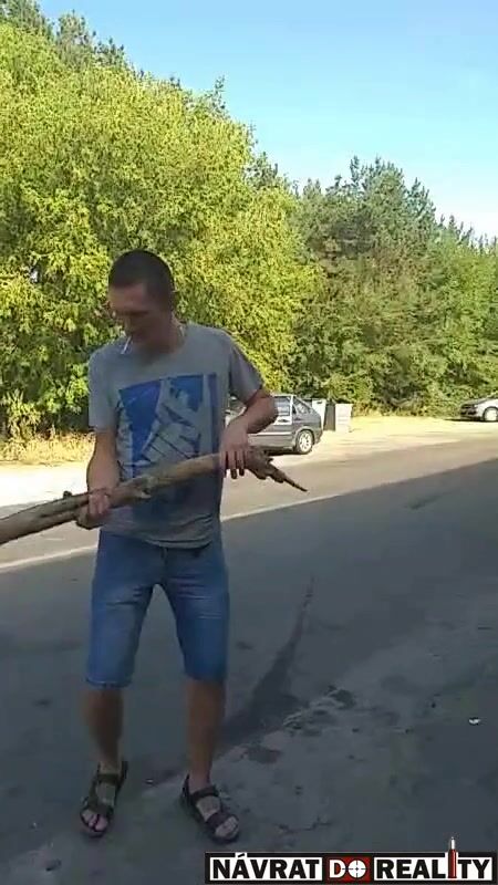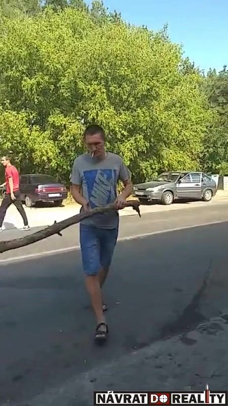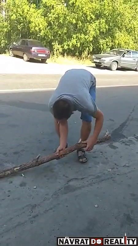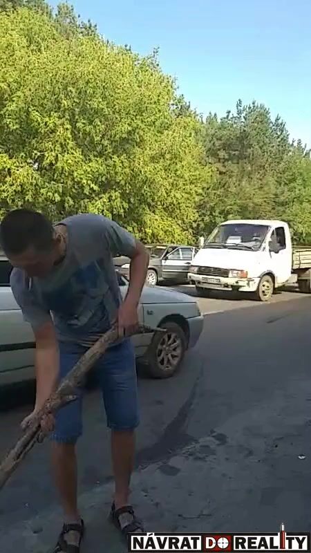 No, ten vozrala na zastavce hodil klacek do silnice a tak se ho jinej sovetskej muzik (ridic) rozhodl tim samym klackem potrestat. Za me cista prace.