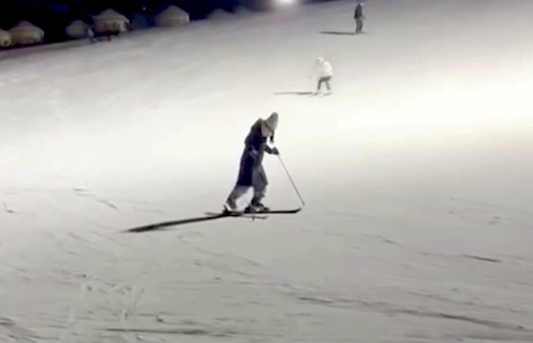 Stepní blbka vleze na lyže, evidentně nic nezvládá, tak holt dostala, o co si svojí debilitou koledovala. I ta druhá, lyžařská výbava jak stehno, místo helmy kulíšek a zbytek jak ohoz z kanclu, jen lodičky vyměnila za lyžáky. Jo lyže, to holt není velbloud nebo kůň a sníh není step nebo polopoušť.