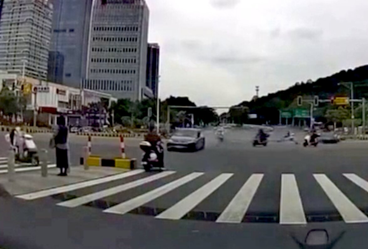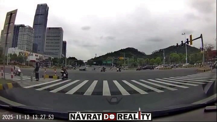 K tragické dopravní nehodě došlo v Číně, kde řidič osobního automobilu nerespektoval červený signál na semaforu a v plné rychlosti vjel do křižovatky, kde se střetl s projíždějícím motocyklem. Náraz byl natolik devastující, že motorkář utrpěl zranění neslučitelná se životem a byl na místě prohlášen za mrtvého, zatímco auto po kolizi narazilo do obrubníku a zůstalo stát. Obrovské štěstí měl další řidič skútru, který v těsné blízkosti střetu čekal na křižovatce a vozidlo ho jen těsně minulo, přičemž celou událost nyní vyšetřují místní úřady, aby určily přesnou míru zavinění a okolnosti incidentu.