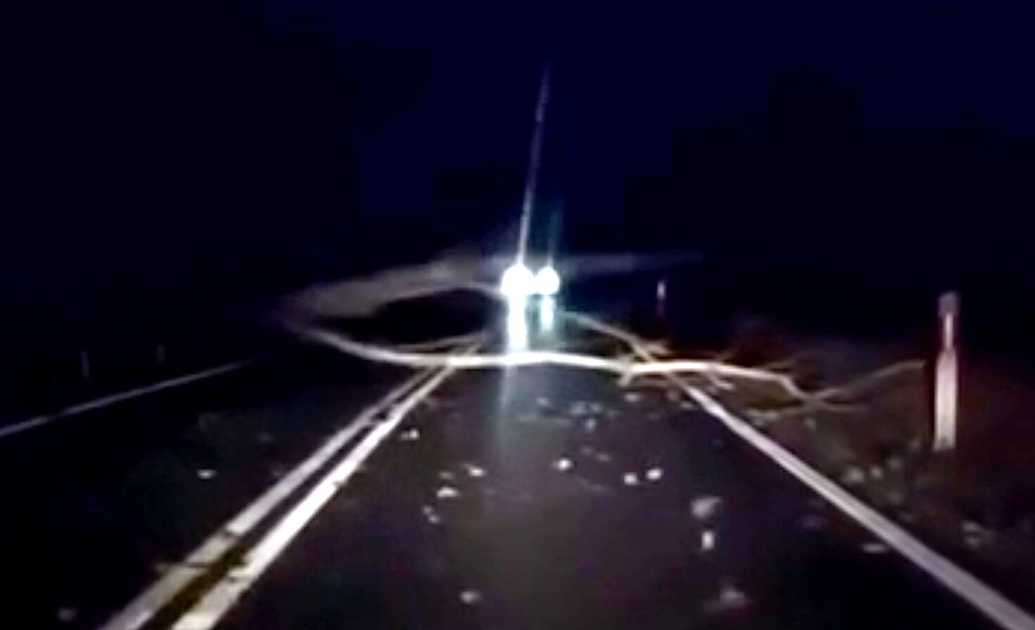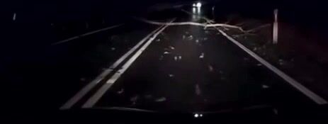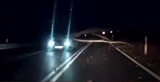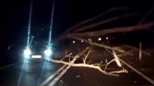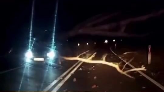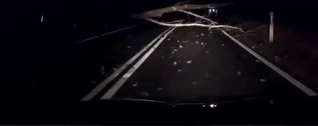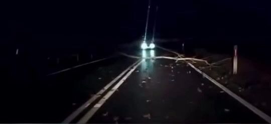 NO, když mu bliká do ksichtu a oslňuje ho, tak je jasné, že ten spadlý strom neuvidí. Nejlepší by bylo zhasnout. Ale to nikoho v té rychlosti nenapadne.