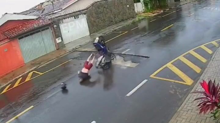 V ulici Washington Luís ve čtvrti Jardim Boa Esperança v brazilském městě Franca došlo k vážné dopravní nehodě, při které se těžce zranil motocyklista poté, co v plné jízdě vjel do neoznačeného výkopu společnosti Sabesp. Bezpečnostní kamery zachytily moment, kdy řidič nad strojem ztratil kontrolu, motocykl se po nárazu převrátil a vymrštěný muž narazil hlavou přímo do asfaltu, přičemž se mu ještě před dopadem uvolnila helma. Zraněného muže v kritickém stavu transportovala záchranná služba SAMU do nemocnice Santa Casa de Franca, zatímco se prověřuje pochybení vodárenské společnosti ohledně chybějícího značení na místě stavebních prací.