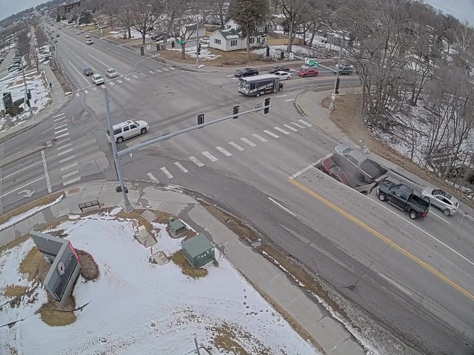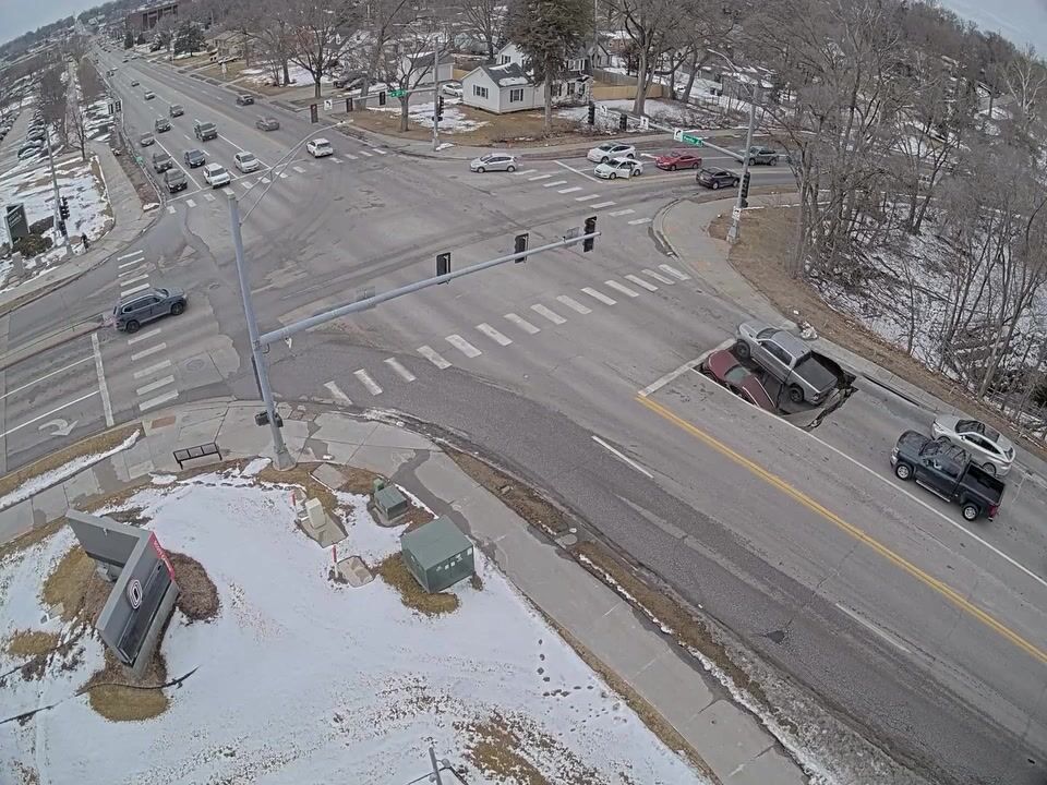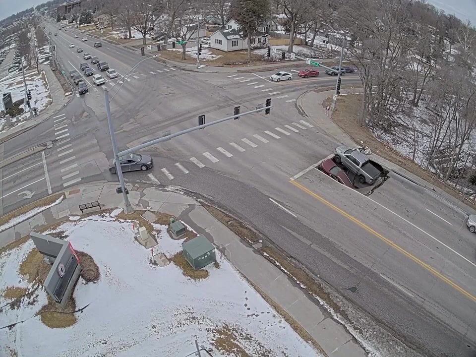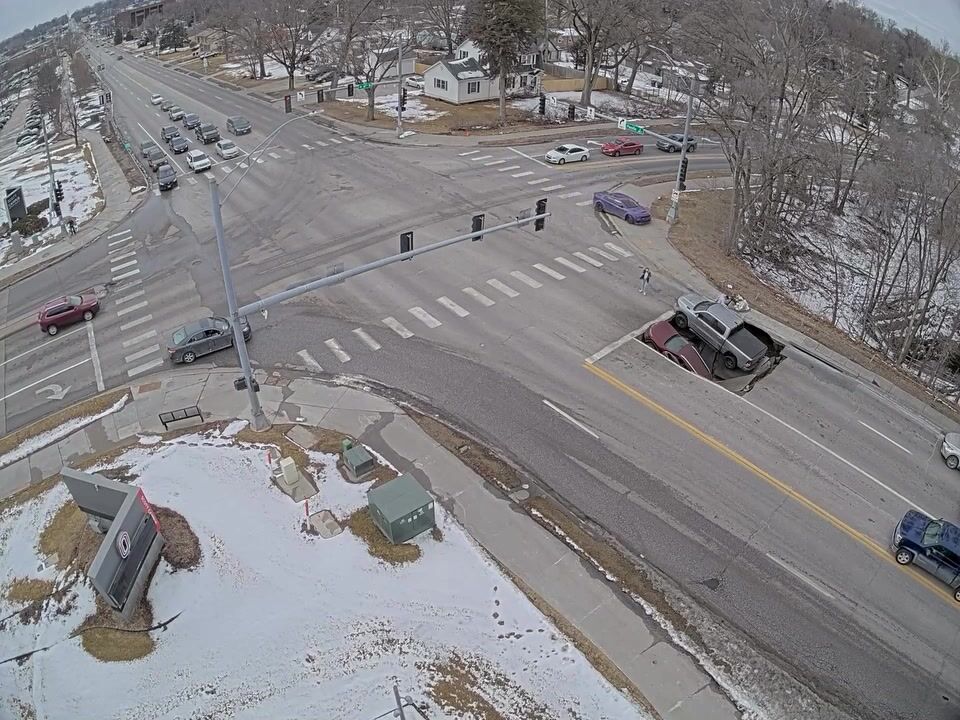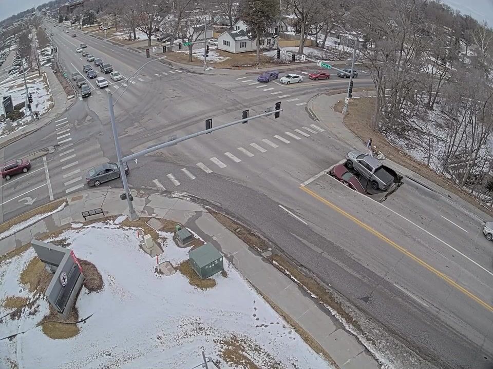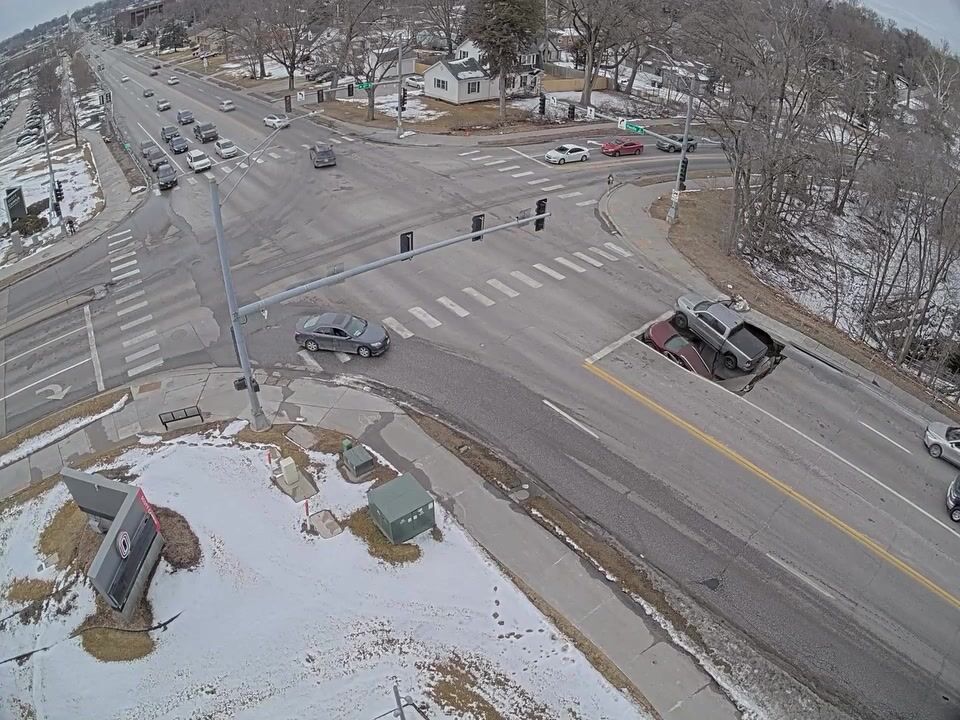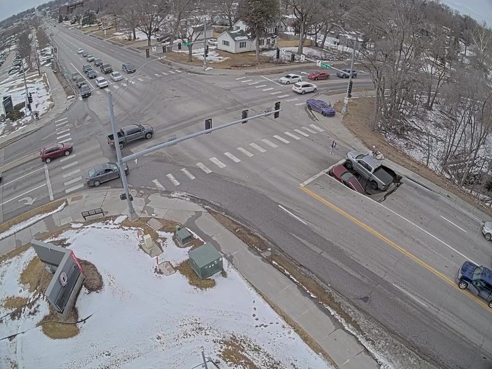 Bezpečnostní kamery zachytily pád dvou vozidel do díry