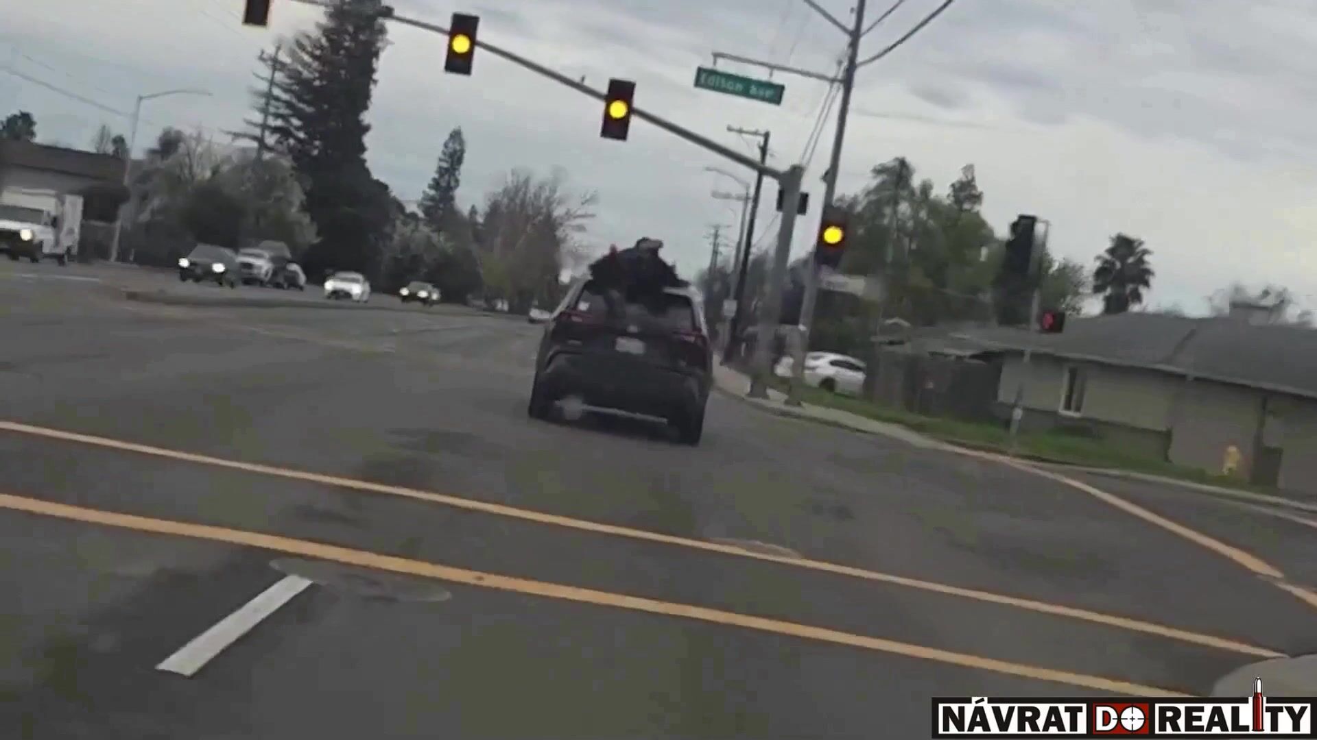 Hazardér v Sacramentu riskoval život jízdou na vnějšku aut, po srážce s vozidlem skončil v poutech