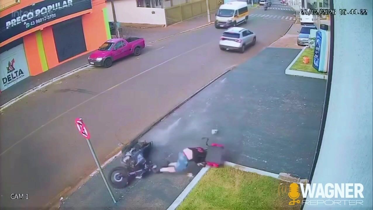 Motocyklista se v centru Cornélio Procópio snažil vyhnout autu a po pádu narazil hlavou do obrubníku