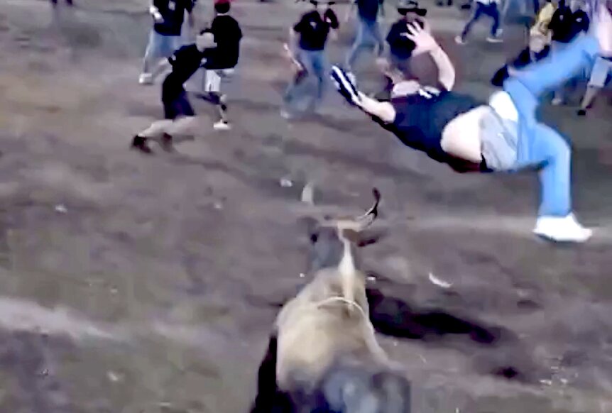 Drsný střet s býkem