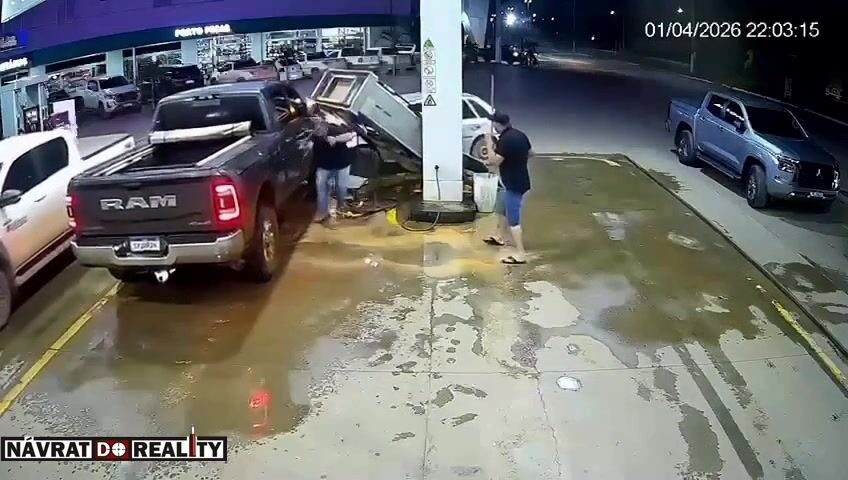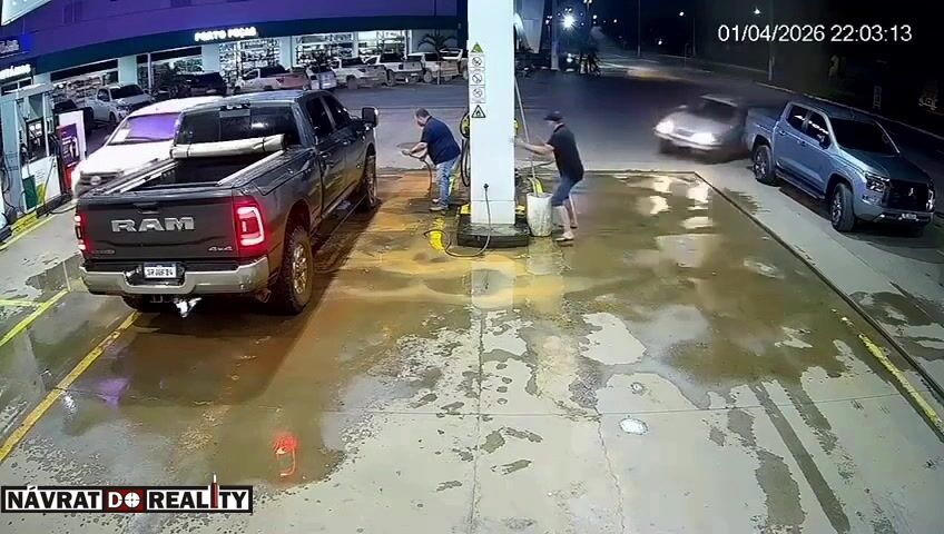 Nehoda v Brazílii: Auto v rychlosti vtrhlo na čerpací stanici a zdemolovalo stojan