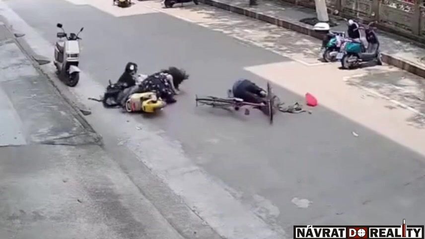 Čelní střet cyklisty se skútrařkou