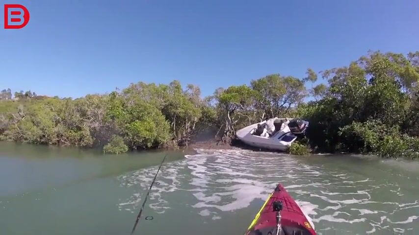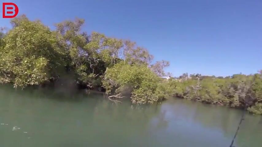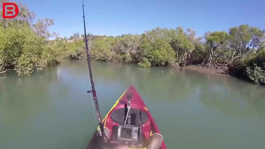 Doufám, že rybář ví, co dělá. V australskejch řekách se obecně nedoporučuje rybařit z kajaku, protože nebezpečí krokodýlů je reálný. V takové řece budou na 100%.