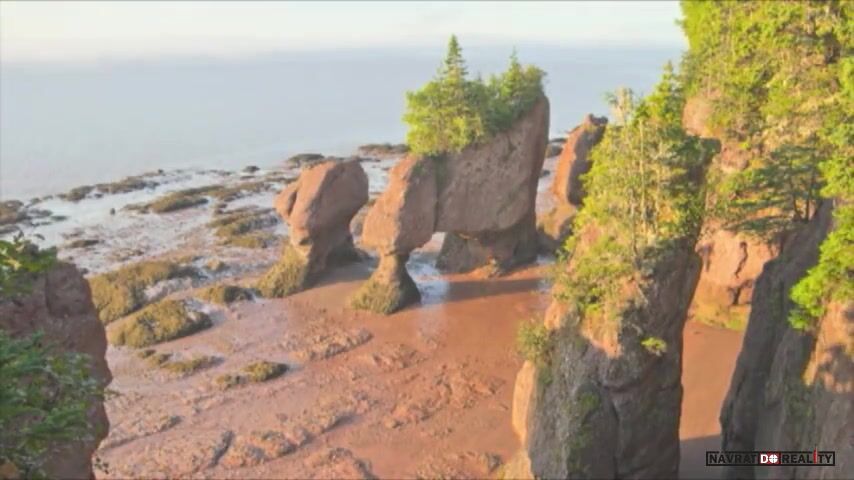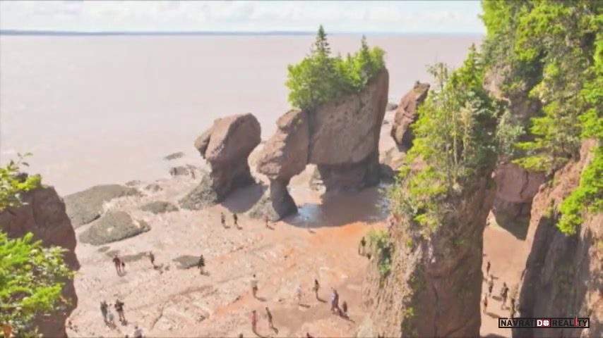 Skály Hopewell Rocks se ukrývají v zálivu Fundy a dvakrát denně jejich podobu mění příliv a odliv. Když je hladina vody nízko, po písečné pláži se prochází turisté. Jakmile ale nastane příliv, voda stoupne do výšky až patnácti metrů. V takových podmínkách se daří zase kajakářům. Za jevem stojí trychtýřovitý tvar pláže - voda při přílivu nemá kam jinam odtéct, a proto je hladina tak vysoko. Aby nedocházelo k žádným tragédiím, před každým přílivem Hopewell Rocks obchází hlídka, která posílá kolemjdoucí do bezpečí.