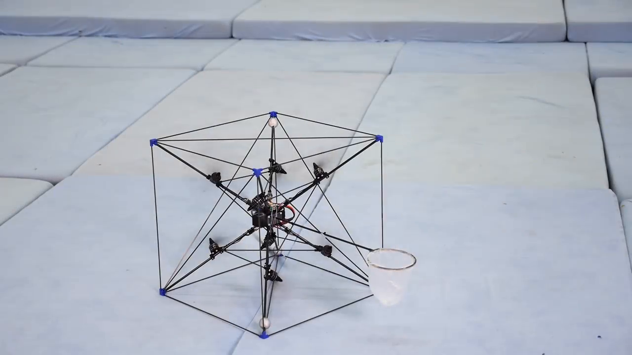 ŠVÝCARSKO: Omnicopter je druh dronu vyvinutý Švýcarským federálním technologickým institutem (ETH). Je vybaven 8 rotory, jejichž jedinečná konfigurace pohonu umožňuje pohyb ve všech třech rozměrech. V této ukázce chytá Omnicopter vyhozený míček do sítě připojené k jeho konstrukci. Je totiž schopen v reálném čase vygenerovat přibližně 500 000 různých trajektorií za sekundu.