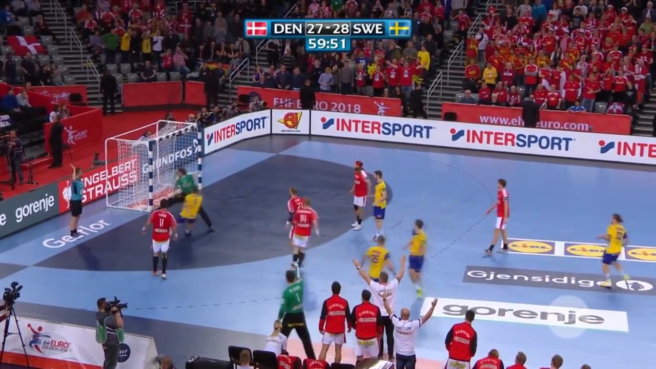 26.ledna 2018, Záhřeb, CHORVATSKO: V semifinále Mistrovství Evropy v házené mezi Švédskem a Dánskem došlo v závěru k velkému dramatu. Švédové vedli 10 sekund před koncem o gól a měli velkou šanci rozhodnout, jenže jejich akci zastavila tyč. Z následného protiútoku se olympijským vítězům z Dánska povedlo v poslední sekundě vyrovnat. Prodloužení však zvládli lépe Švédové a po výsledku 35:34 postoupili do finále proti Španělsku.