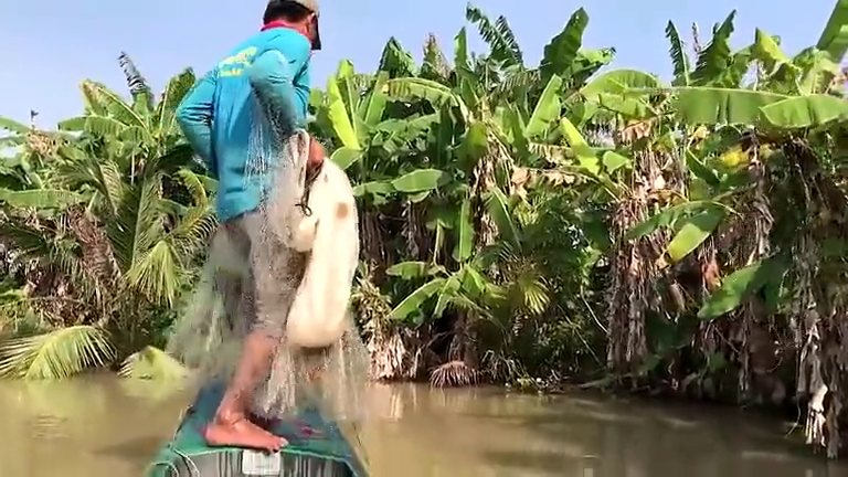 KAMBODŽA: Pěkný úlovek v podobě vzácné veleparmy thajské (Catlocarpio siamensis), která může mít až 3 metry a 300 kg. Veleparma (alias Siamský kapr) doplácí na změny životního prostředí a už i malí jedinci začínají být velmi vzácní. Proto je tato sladkovodní ryba na červeném seznamu ohrožených druhů.