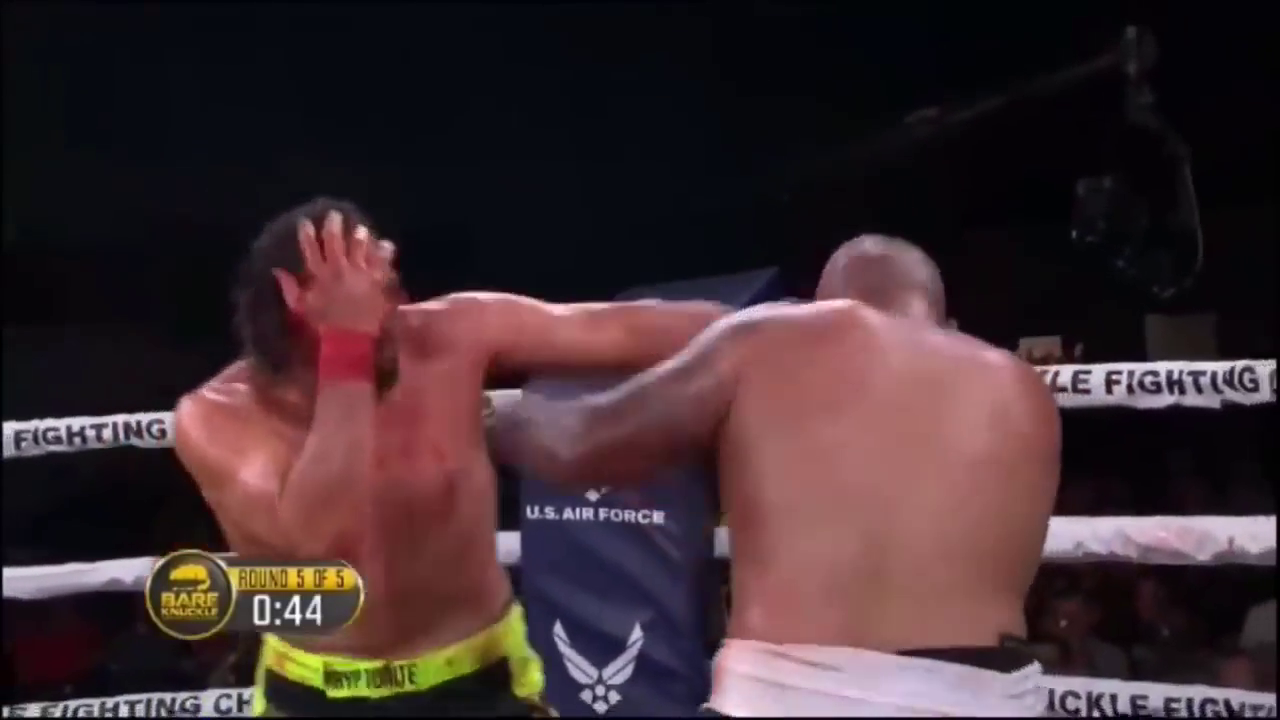 2.června 2018, Wyoming, USA: Poslední kolo souboje mezi 55letým ex-boxerem Tonym Lopezem a 36letým Joeym Beltranem, který se zase věnuje MMA, na turnaji v boxu bez rukavic (Bare Knuckle Fighting Championship). Na body v poměru 49-45, 49-45, 49-46 vyhrál Lopez (ten s vlasama). Před zraky 2000 diváků se uskutečnilo 10 zápasů (z toho jeden ženský), v nichž se objevili hlavně veteráni profi boxu a smíšených bojových umění.