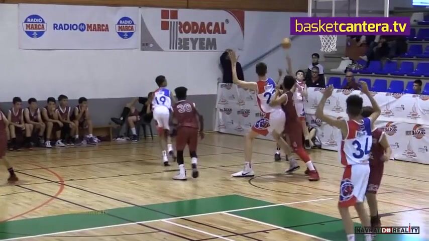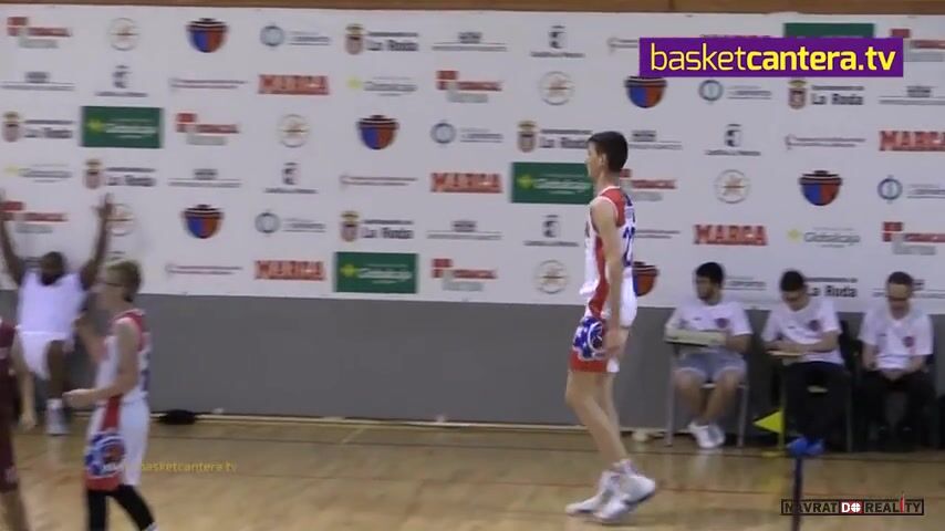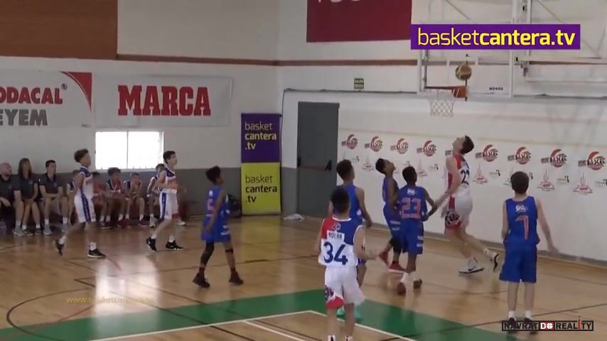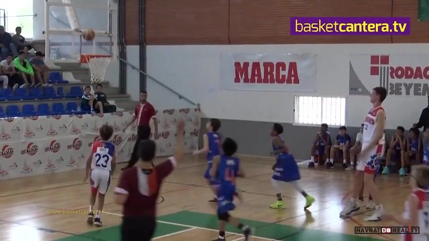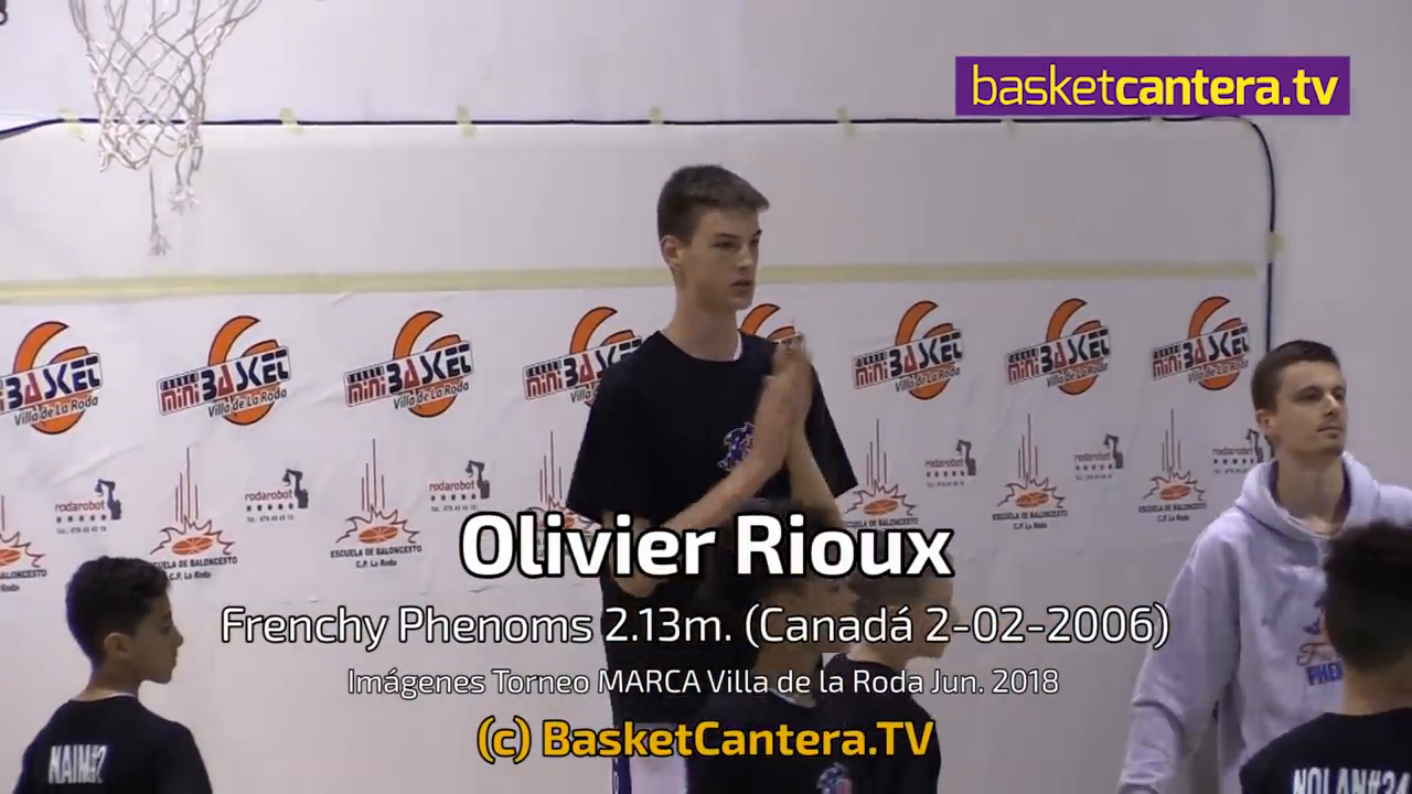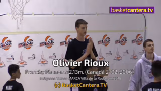 12letý kanadský basketbalista Olivier Rioux během mezinárodního turnaje U12, který se konal v La Roda ve Španělsku. Olivier měří 2,13 metru a jelikož v tomto věku jsou koše umístěny ve výšce 2,6 m (pro dospělé je to 3,05 m), nemusí vúbec skákat. Ve finále turnaje jeho tým "Frenchy Phenoms" prohrál 89-90 s Realem Madrid a Olivier zaznamenal 26 bodů.