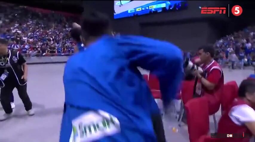 Sudí překvapivě ale duel neukončil, pouze po přezkoumání videa vyloučil devět hráčů na straně Filipín, těm tak zbyli pouze tři muži.
