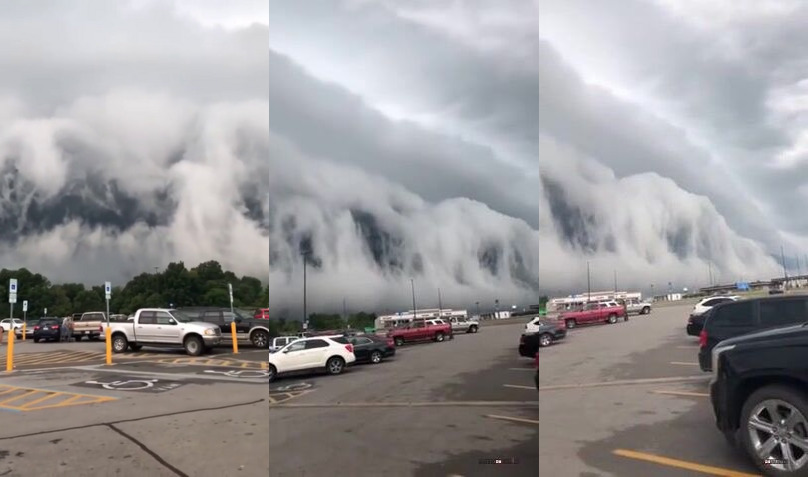 7.srpna 2018, Illinois, USA: Maranda Marie Benefield natočila z parkoviště u Walmartu ve městě Anna podivná mračna, která byla doprovázena náhlým klesnutím teploty a silným větrem.