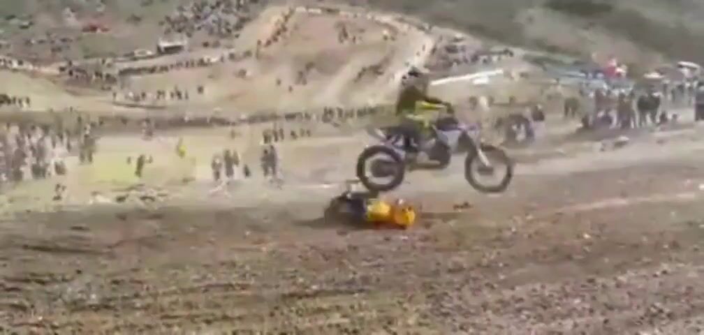 Smůla že padl na tak blbým místě po doskoku už s tou motorkou nejde nic moc dělat jenom ji srovnat nebo padnout taky