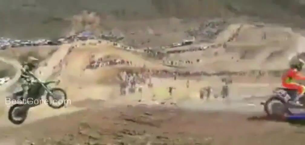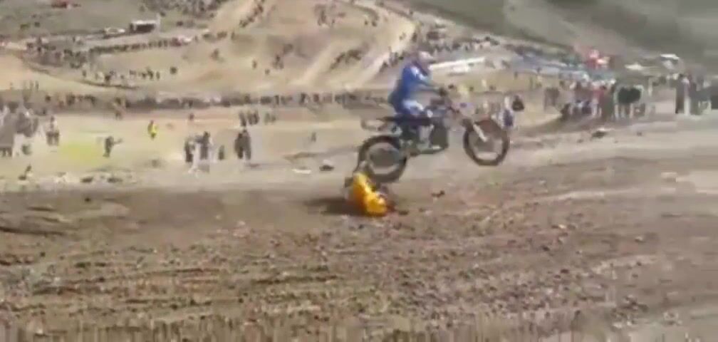 Jako malej kluk v Bratčicích u Čáslavi jsem viděl, jak po podobým pádu týpkovi na motokrosu přistál chlapík s krosovou Jawou 500 přímo motorem na xichtu. Pamatuju si to už ca 30let, jak to bylo dobrý. (Tehdy týpek zemřel a od té doby se tam nezávodilo.)