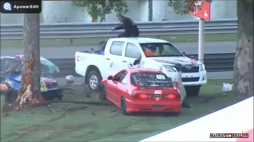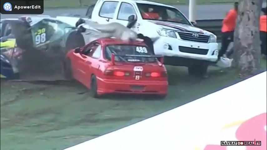 Pěkně se z toho bouráku vyloupnul kulihrášek jeden a to druhý auto jak pěkně za letu vodpružil do relaxující polohy na zemi, opravdu klobouk dolů.