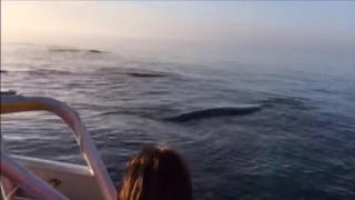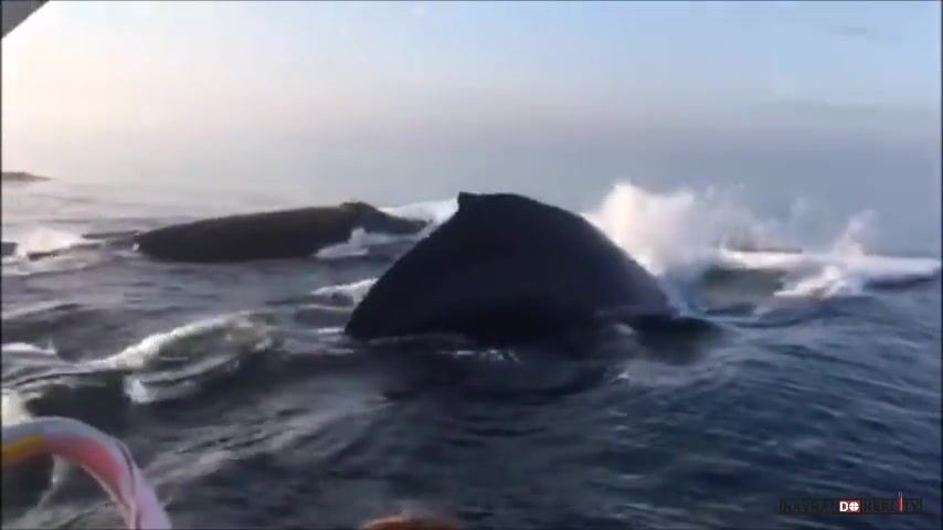 Paráda. Je vidět, že to nedělají náhodou, ale vědomě pro ty lidi. Ti tam asi taky nebudou na malém člunu v záchranéých člunech uprostřed moře náhodou. By mě zajímalo, jestli je k tomu ten průvodce turistů nějak motivuje (žrádlem) nebo to dělají jen pro srandu.