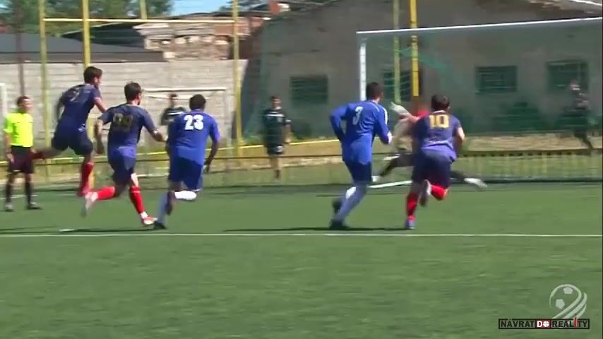 Kdyby se neshybl tak by to bylo nejspis do ramene a gol by nedal, nejlepsi je ta reakce brankare, jako co delas? si delas prdel ne? :smile: