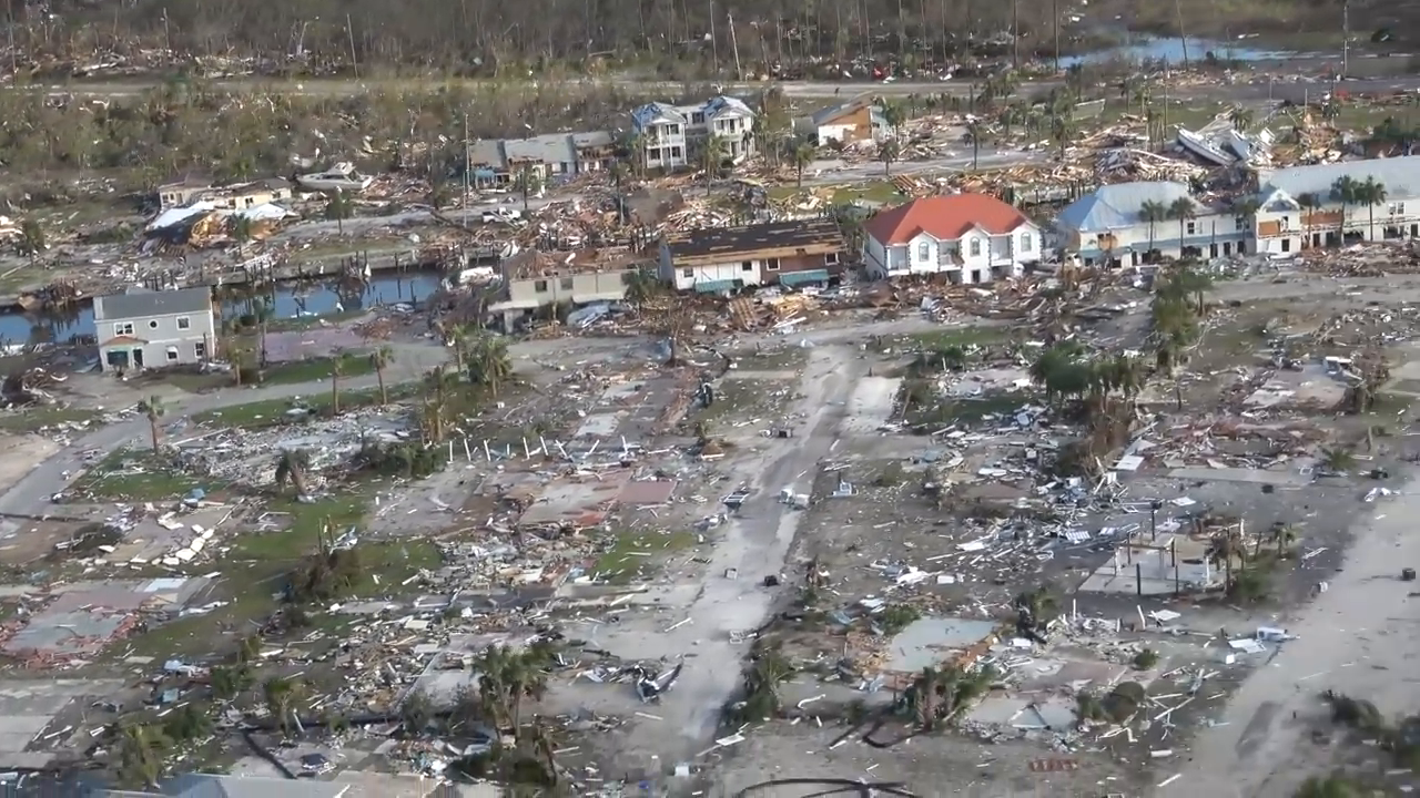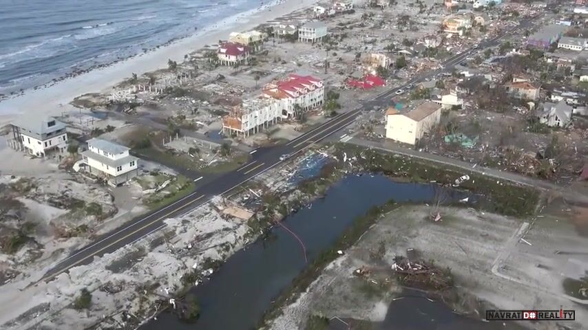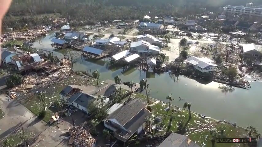 USA: Záběry z vrtulníku na Mexico Beach na Floridě, kde se ve středu 10. října 2018 prohnal hurikán Michael. Jeden z nejničivějších hurikánů v historii Spojených států, opustil pevninu a zamířil nad Atlantik. Podle agentury Reuters si vyžádal minimálně osmnáct obětí. Devět mrtvých hlasí Florida, pět Virginie, tři Severní Karolina a jednoho Georgia.