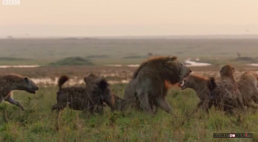 Proč ten lev nějakou z těch hyen pořádně nezakousne? To se ta hyena dokáže vysmyknout nebo ji ten lev sám od sebe pustí?