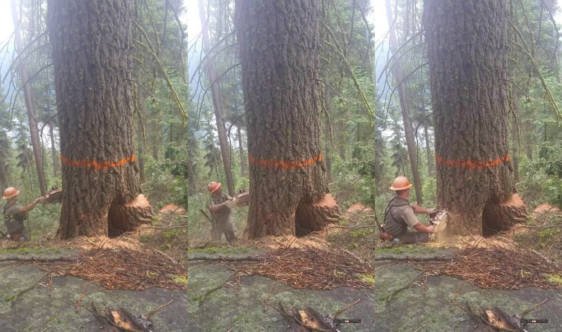 Na začátku je vidět, že je naříznutý....proto ho musel pokácet.