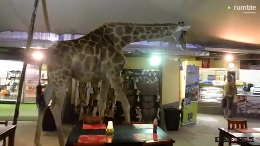 No to je toho.. Kdyby tady u nás vběhla na letní zahrádku koza, tak z toho taky nikdo nebude na větvi. To kdyby ta žirafa přišla u nás do restaurace, to by byla jiná! To by bylo drsný. Ale v Africe.. To nemůže přeci nikoho moc překvapit. No neee?