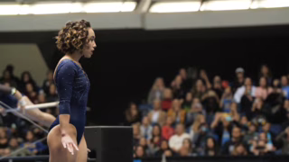 Nevypadá jako gymnastka a přece jenom zíráš, kde se to v ní bere. Poklona.