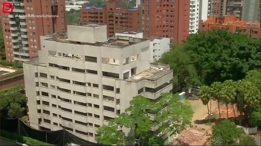 22. února 2019, Medelín, Kolumbie: Osmipodlažní dům, kde mezi lety 1986 a 1988 bydlel Pablo Escobar, byl po rozhodnutí vedení města srovnán se zemí. Na místo kde dům stál plánuje radnice vybudování klidové zóny a pietního místa, které by připomínalo oběti krvavých drogových válek z 80. a 90. let minulého století.