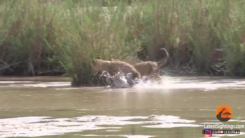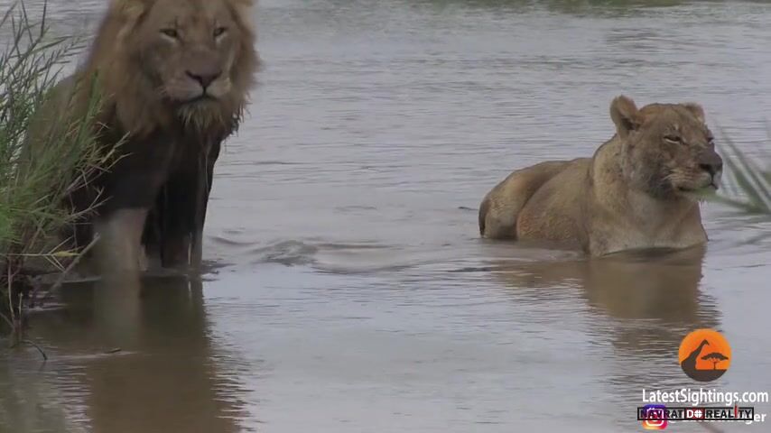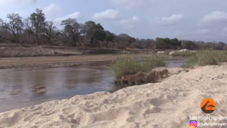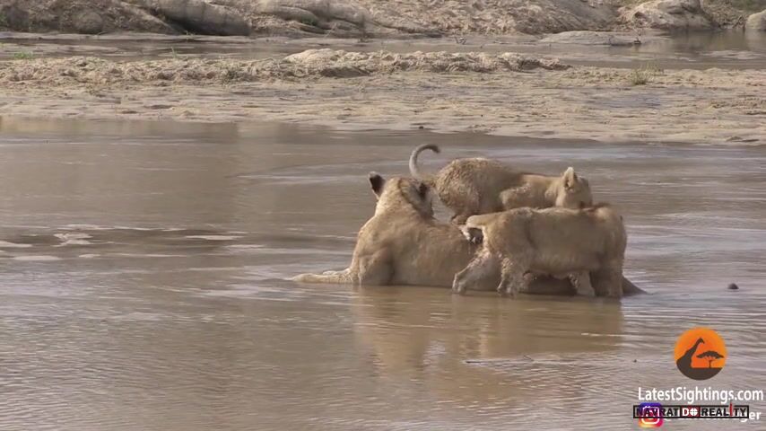 Lví rodinka u vody