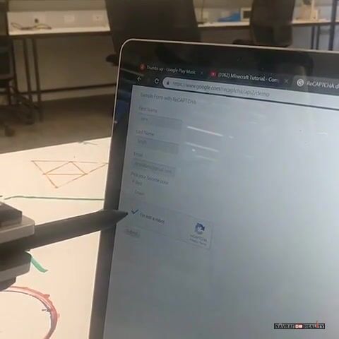 taková víkendová blbinka, no, realističtější popisek je (pominu, že recaptcha rozhodně není turngův test): robot se dotknul přdem definovaného místa.