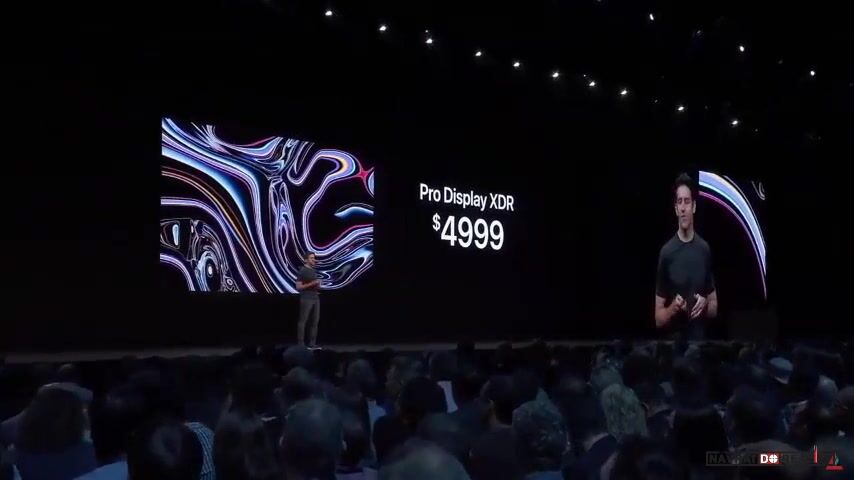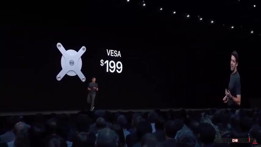 3.června 2019, Kalifornie, USA: Reakce návštěvníků letošní vývojářské konference WWDC, když John Ternus (viceprezident společnosti Apple pro hardwarové inženýrství) oznámil cenu zbrusu nového monitoru. Ten nese název Apple Pro Display XDR a stojí 4 999 dolarů (114,5 tisíc korun). Diváky pobavila cena za ergonomický stojan, za který se musí připlatit další tisíc dolarů (22 880 kč). Monitor je určen pro skutečné profesionály a na stojanu lze mít až šest takovýchto displejů najednou. Za 199 dolarů (4560 kč) lze pořídit rozhraní VESA, pomocí kterého dochází k přimontování monitoru přímo ke zdi.