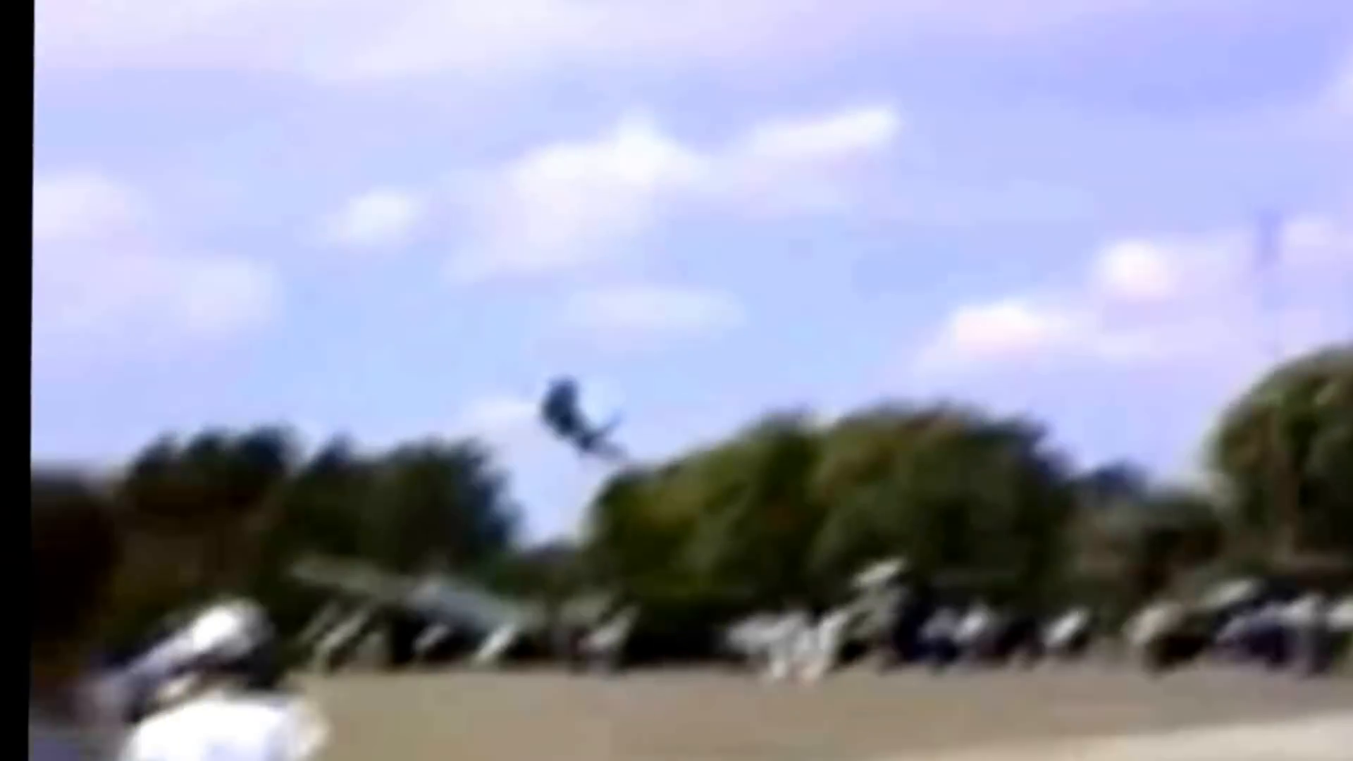 Toto video je prd, ukazuje sa tu len pad lietadla. Najdite si to na YT, je tam dlhe video, ktore ukazuje hlavne to co nasledovalo po nehode. Autor videa sa tam prechadza s kamerou a filmuje kusy ludi co su pohadzane vsade naokolo. Je tam i vidiet pilota, ako si na zemi bali padak a okolo beziaci chlapec ho placne po chrbte.
