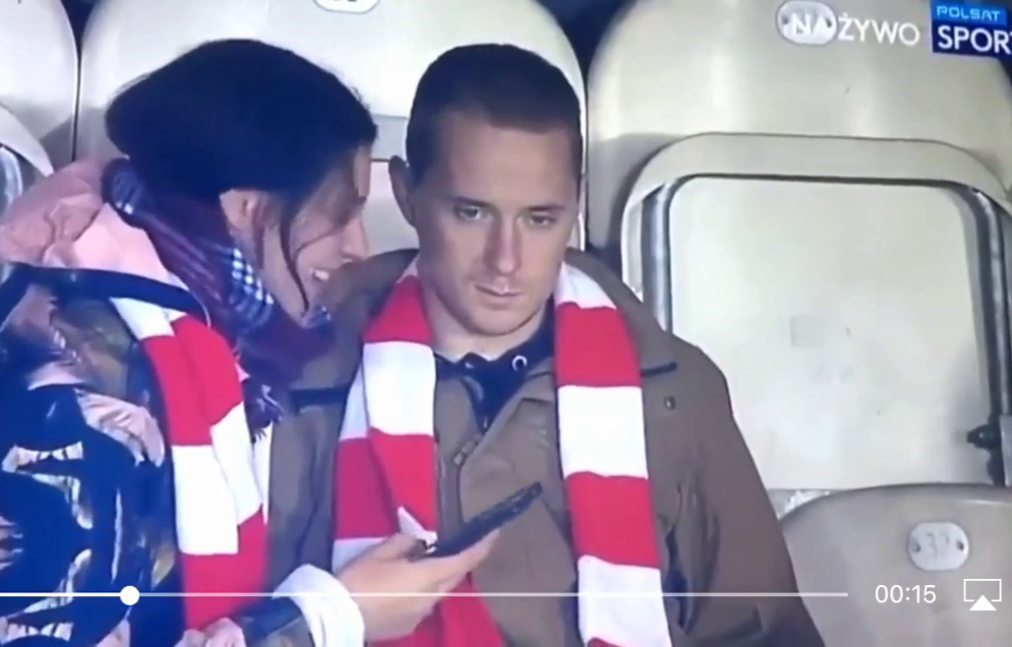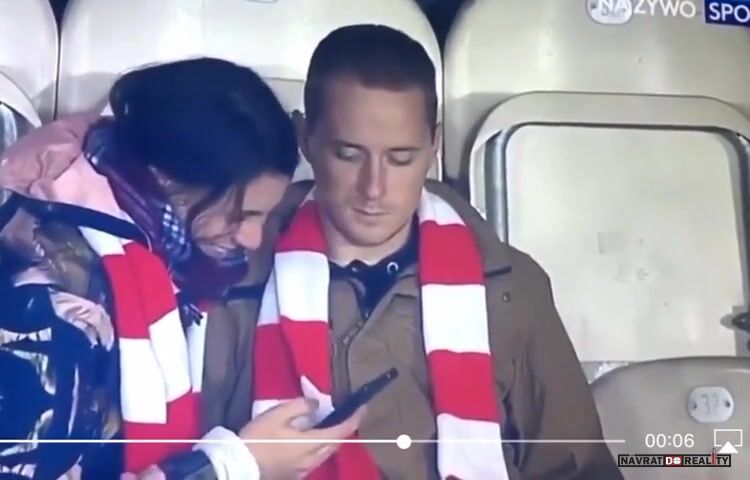 Vypadá jak jdyby mu došlo že všechny fotbalový zápasy jsou předem domluvený :-D A jí to je uplně u prdela a ani si nevšimla že už je konec...