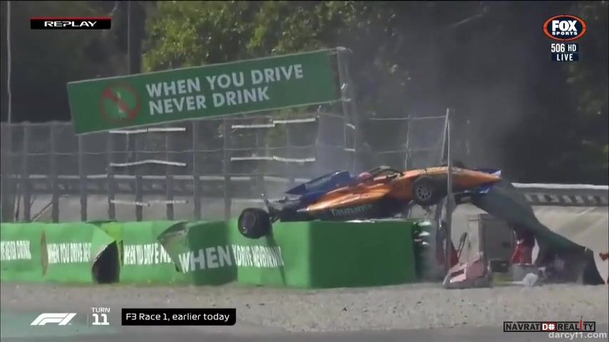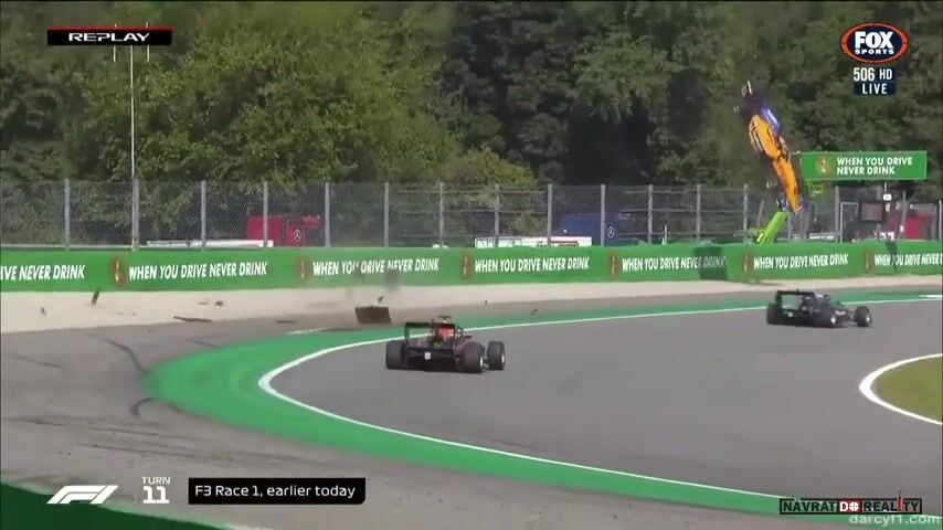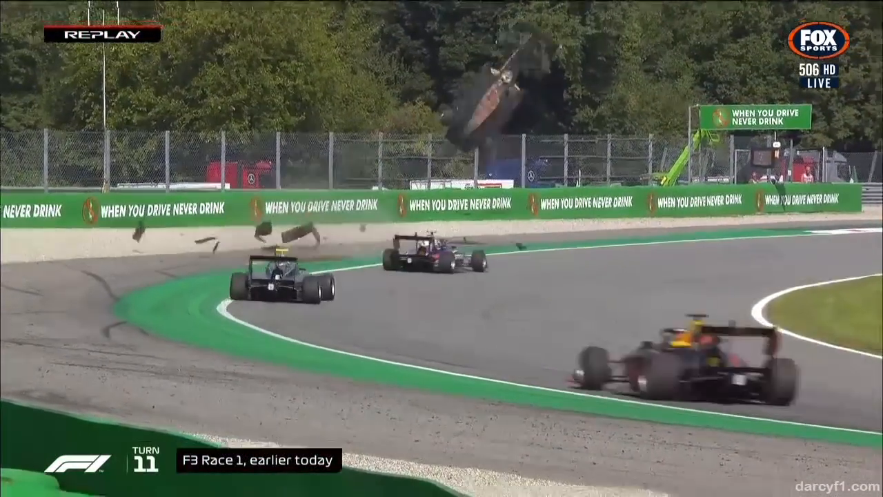 7. září 2019, Monza, Itálie: Pří závěru sobotního závodu F3 se vůz Alexe Peroniho po nájezdu na obrubník v zatáčce Parabolica vznesl do vzduchu a zde se ještě před dopadem na bariéru několikrát otočil. Naštěstí byl ale jezdec schopen opustit vůz po svých. Bez úhony ovšem Australan z incidentu nakonec přeci jen nevyvázl. Následné vyšetření u něj totiž odhalilo zlomeninu obratle a lékaři se navíc rozhodli 19letého závodníka ponechat přes noc v nemocnici na pozorování.