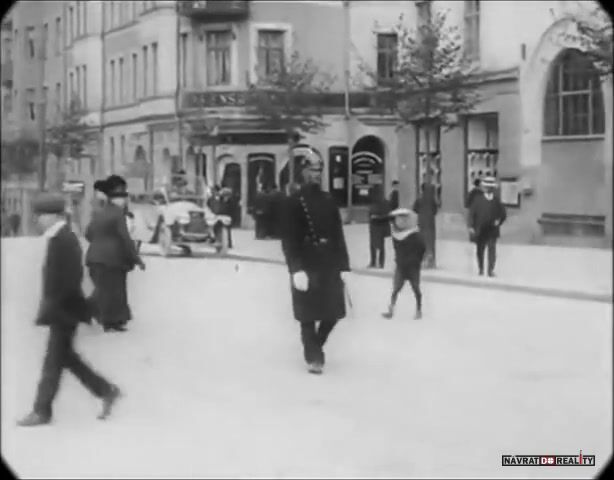 0:35 - chodici panska elegance, ale slapat po konskych koblihach bylo zjevne normalni. 3:15 - chodniky narvany k prasknuti, auto jedine. Dnes obracene. No a do silnice se lezlo bezmyslenkovite uz tenkrat.