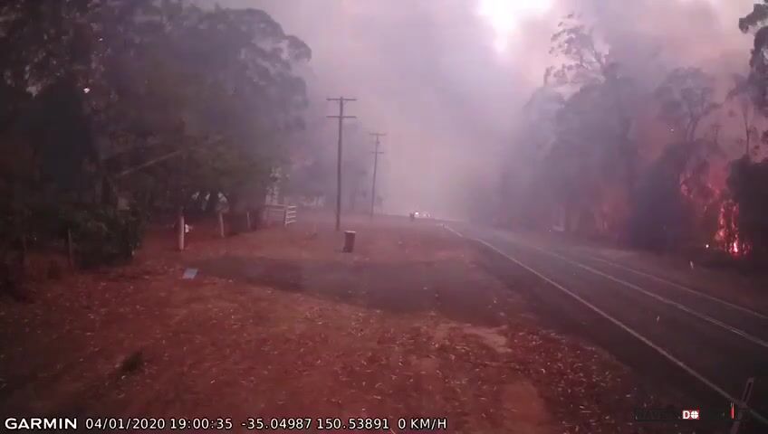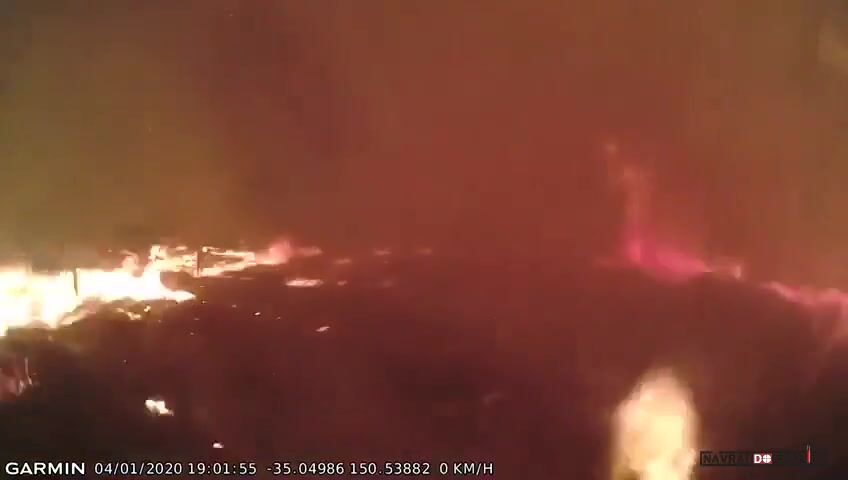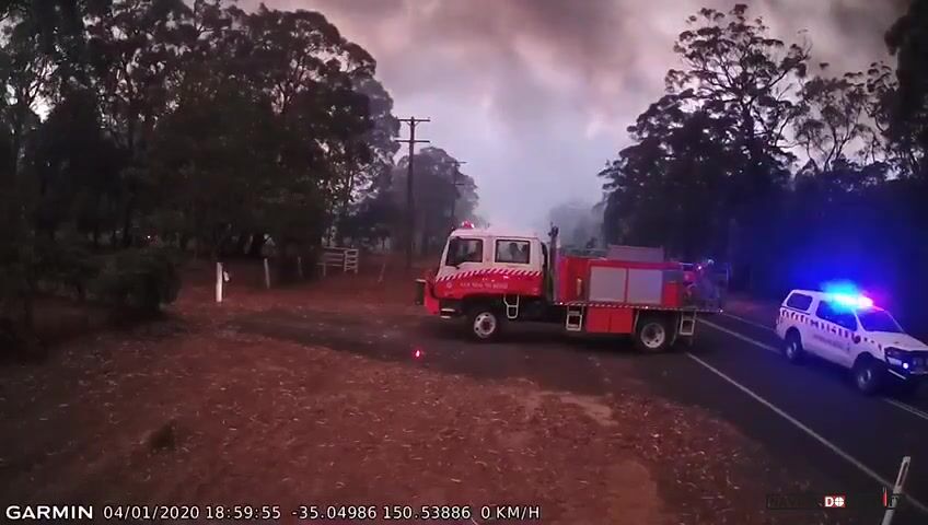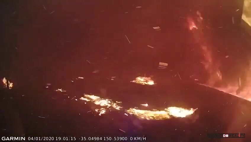 4.ledna 2020, AUSTRÁLIE: Venkovská hasičská jednotka Dunmore Rural Fire Brigade měla za úkol ochránit majetek v Tomerongu v Novém Jižním Walesu. Od jihu však začal foukat silný vítr, který zahnal oheň směrem k hasičům. Ti se z místa rychle evakuovali. Na místě zůstal jedna jednotka, která u vozu dvakrát spustila samohasící systém.